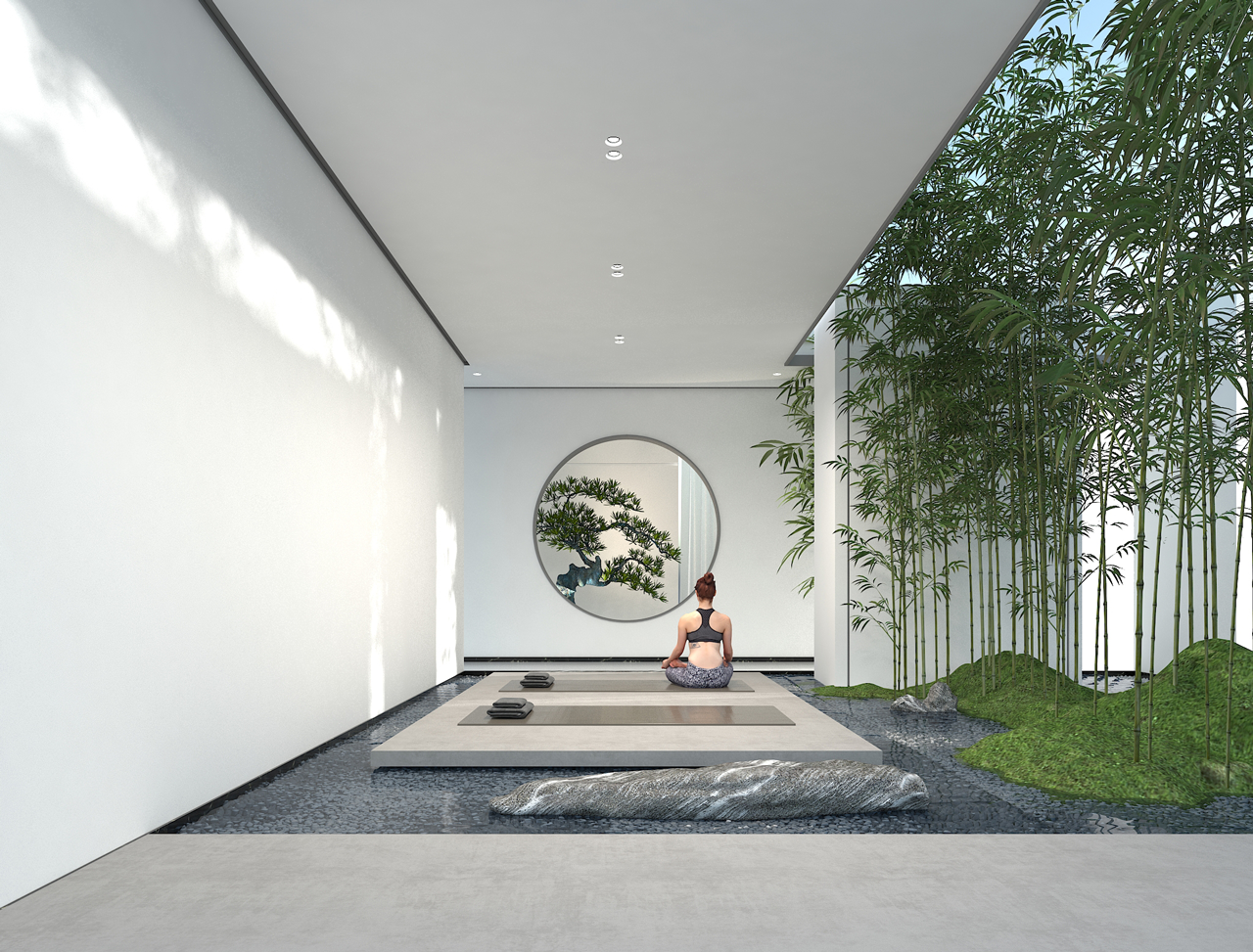 如今,人们渴求温暖而真诚的接触。瑜伽的本质是通过控制思想和动作,寻求内在精神的平和。它可以治愈生命,从而提升生活的品质;读取人们的能量,帮助身体平衡,从而维持健康的关系;与直觉对话,从而治疗现代社会中身体、精神、情感的问题和伤痛。为了充分体现瑜伽的精髓,瑜伽馆的设计最求以“在动作中冥想”的概念创造了一个流动而深邃的空间。瑜伽中有八个训练冥想动作的阶段,被大致分成了道德、身体和精神三个阶段,在瑜伽馆装修中反映在空间的序列上。